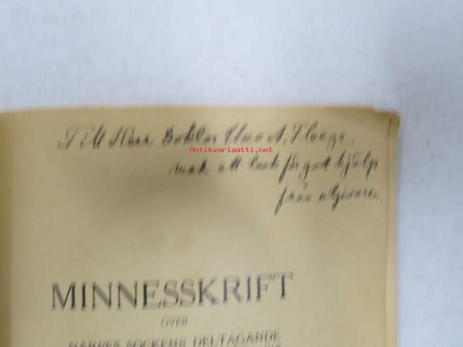 Minnesskrift över Närpes sockens deltagande i frihetskriget år 1918 -närpiöläisten osuus Vapaussodassa julkaissut pastori Tor Krook, omiste tohtori Uno A. Fleege´lle