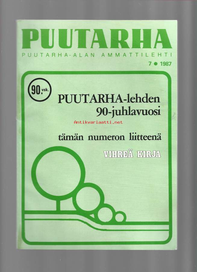 Puutarha 1987 nr 7 Puutarha-alan ammattilehti 90v juhlavuoden numero