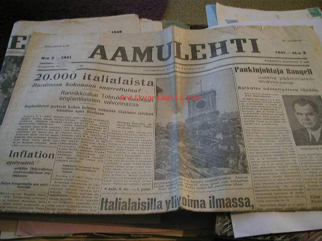 Aamulehti helmikuun 26. p:nä 1940 Näköispainos sarjat sodan lehdet
