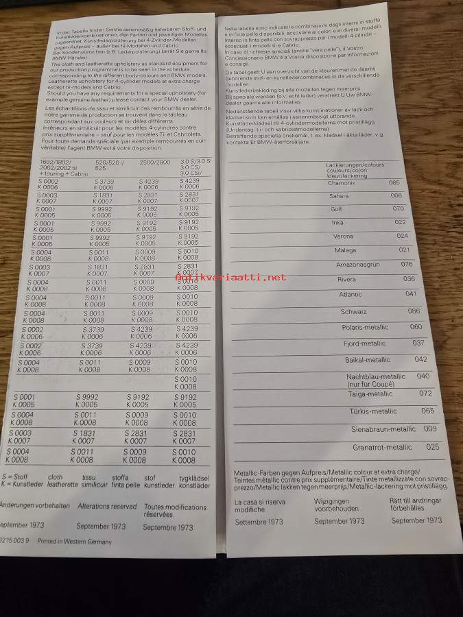 BMW 316, 318 i, 320 i ja 323 i farben und polster. colour and upholstery.