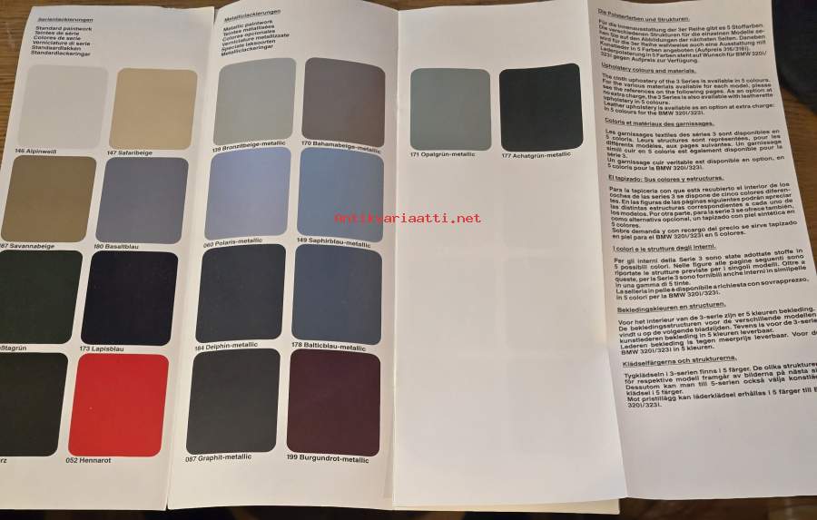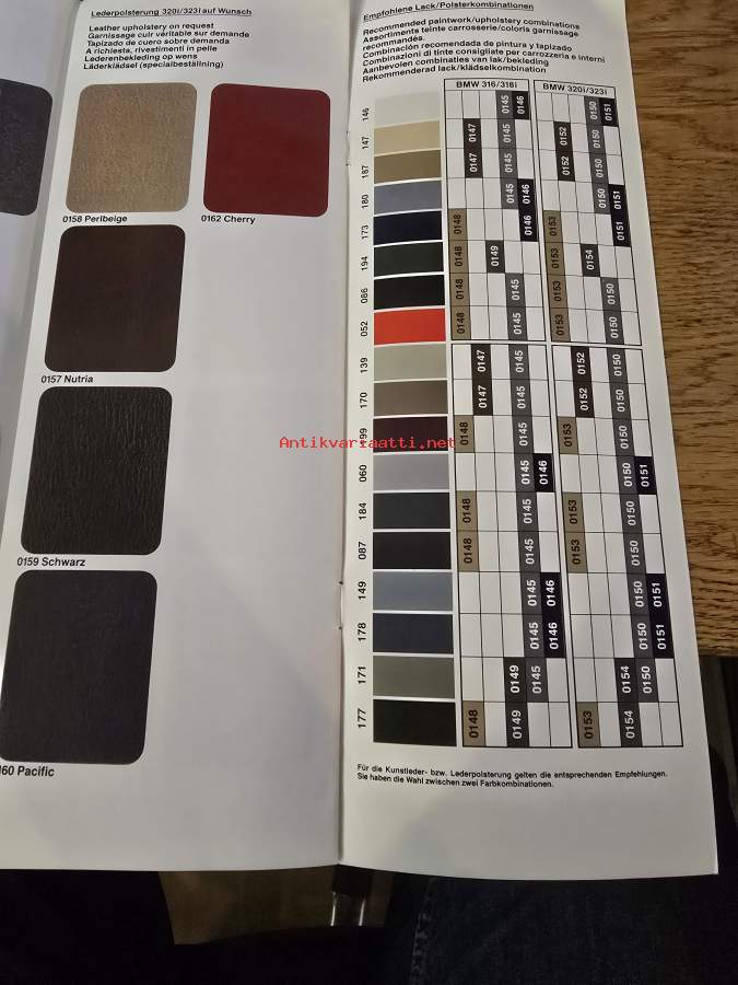 BMW 316, 318 i, 320 i ja 323 i farben und polster. colour and upholstery.