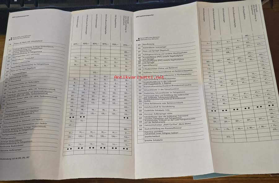 volkswagen 1970 preisliste 6 kappaletta. Saksa