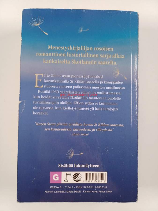 Sarja: Kesytön saariAlkuteos: The Last SummerAsiasanat: luonto, evakuointi, linnut, kaunokirjallisuus, romantiikka, unelmat, Skotlanti, saaret, rakkausromaanit
