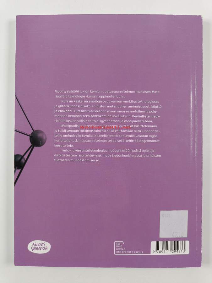 Sarja: Mooli 4Asiasanat: lukio, kemia, materiaalit, matematiikka, teknologia, polymeerit, kemialliset reaktiot, metallit, keraamiset materiaalit, komposiitit