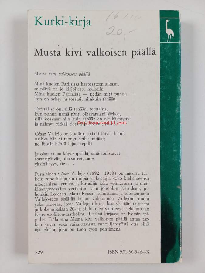 Musta kivi valkoisen päällä : Cesar Vallejon runoutta ja proosaa