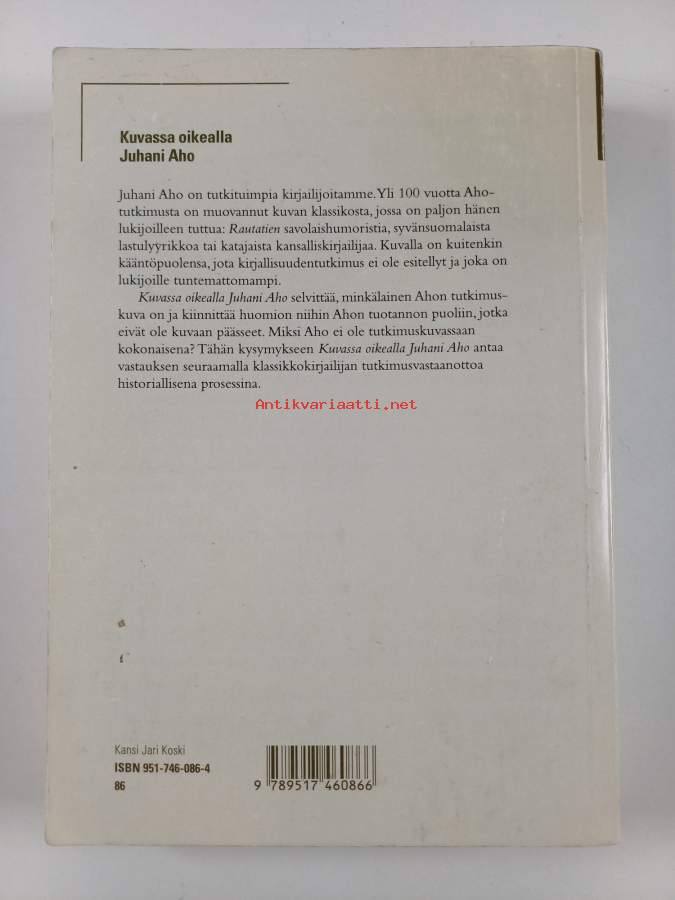 Kuvassa oikealla Juhani Aho suomalaisen kirjallisuudentutkimuksen Aho-kuva 1880-luvulta 1990-luvulle