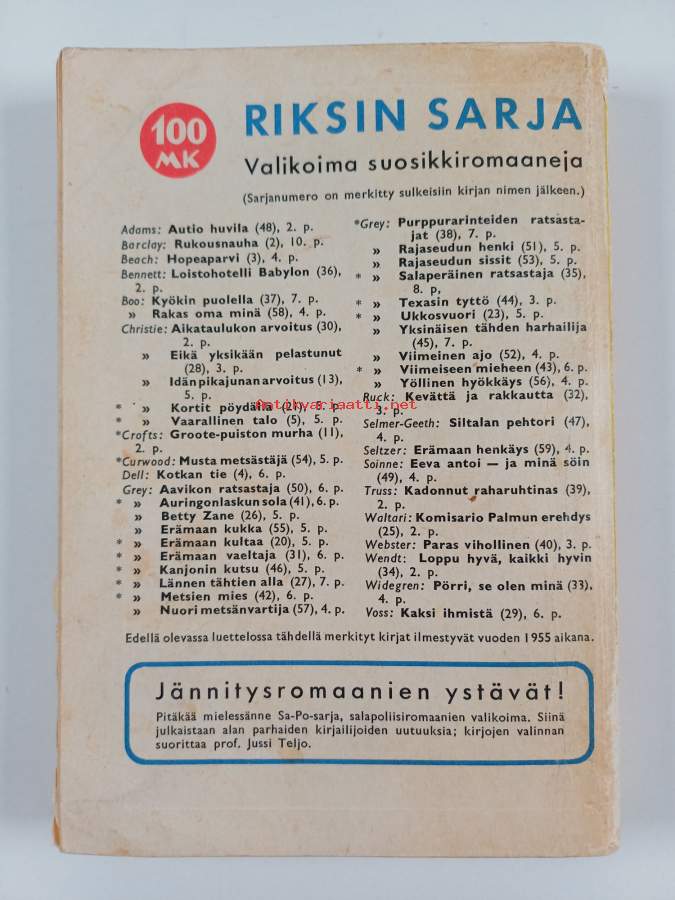 Hamsteri kirjasarja : MUSTA NAAMIO. N:o 100. p. !985