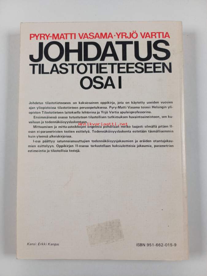 Tyydyttävä. Tarkempi kuntoluokka: K2+ ; Hieman nuhruisuutta, selkämyksessä hieman vinoutta, takana hintalapun jäämää, muutamalla sivulla merkintää