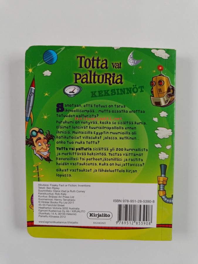 Muu(t) tekijä(t): Hannu TervaharjuSarja: Totta vai palturiaAlkuteos: InventionsAsiasanat: visailukysymykset, keksinnöt