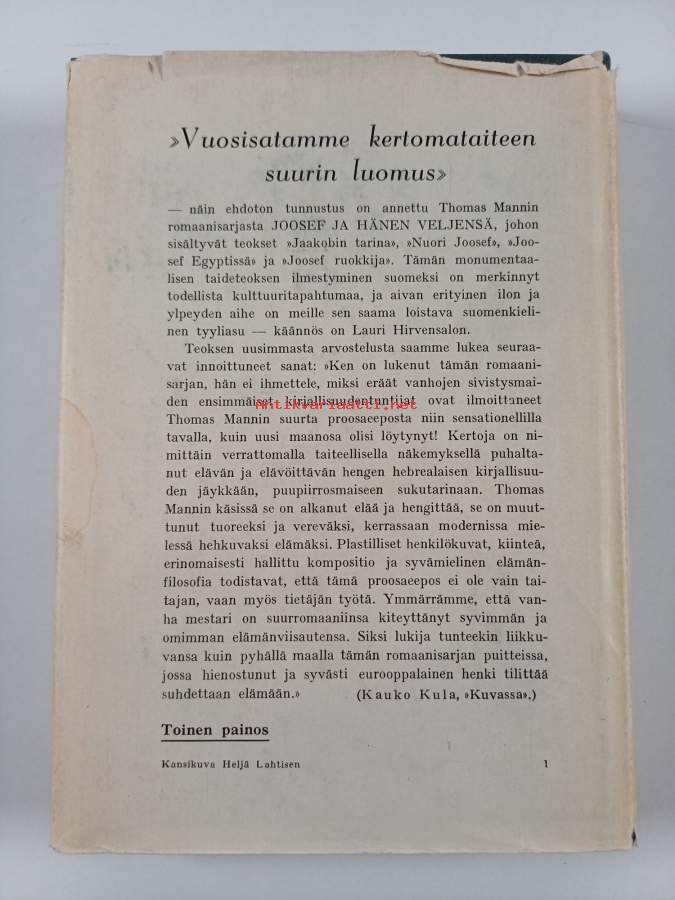Jaakobin tarinaKirjaMann, Thomas ; Hirvensalo, LauriWSOY 1947.
