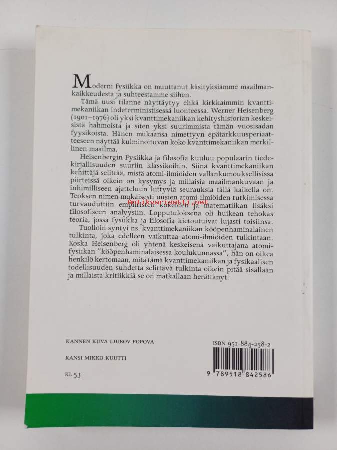 Muu(t) tekijä(t): Risto VilkkoAlkuteos: Physics and philosophyAsiasanat: filosofia, fysiikka, kvanttimekaniikka, atomifysiikka, kvanttiteoria