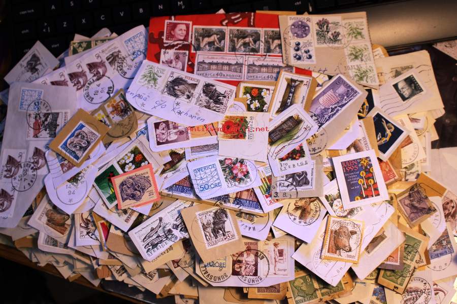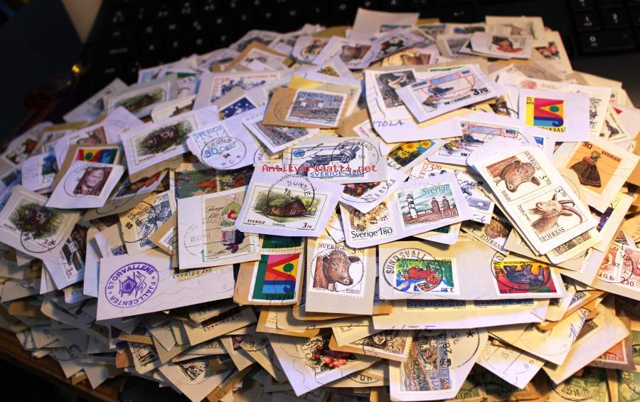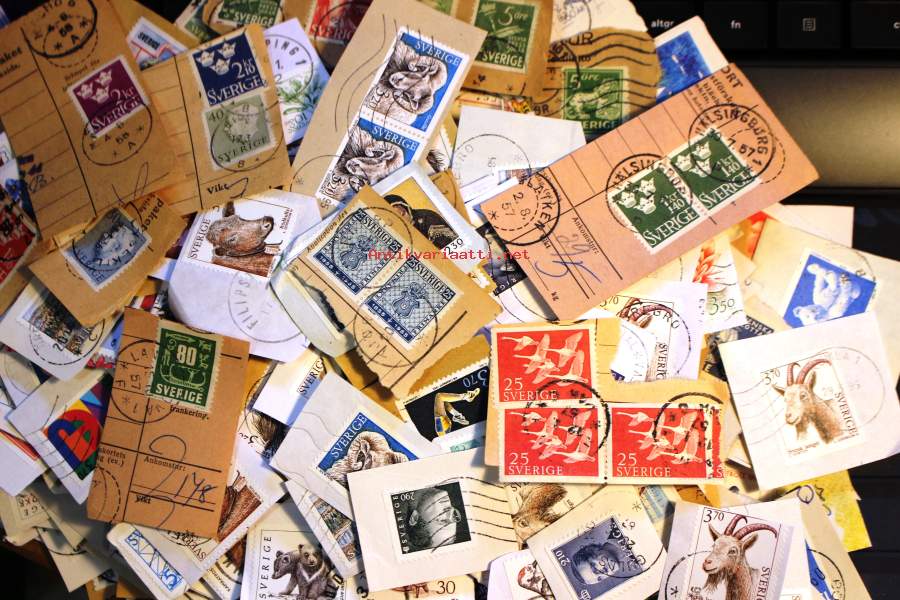 Filatelia - Ruotsi: Postimerkkileikettä n. 550g. Mukana vanhaa ja uudempaa leikettä.