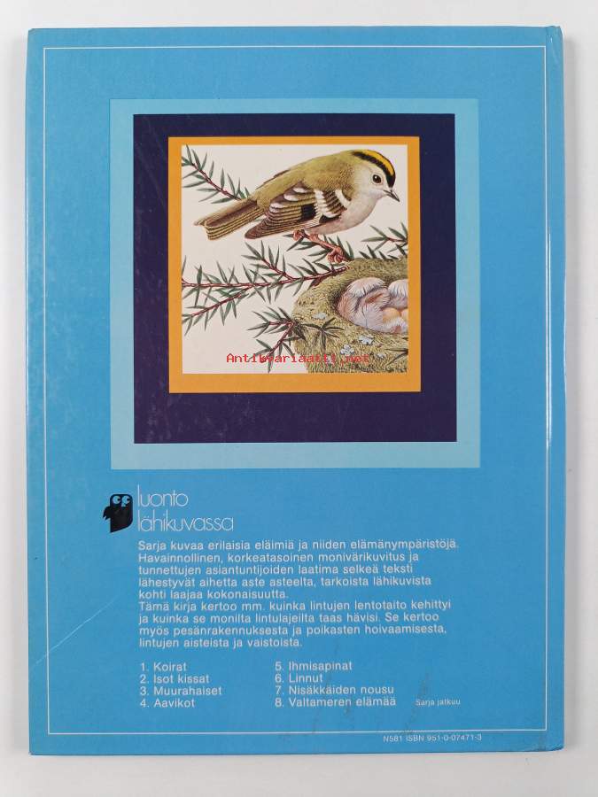 Muu(t) tekijä(t): Virve Kajaste, Jim Hicks ym.Merkinnät: omistajamerkintäSarja: Luonto lähikuvassa 6Alkuteos: A closer look at birds