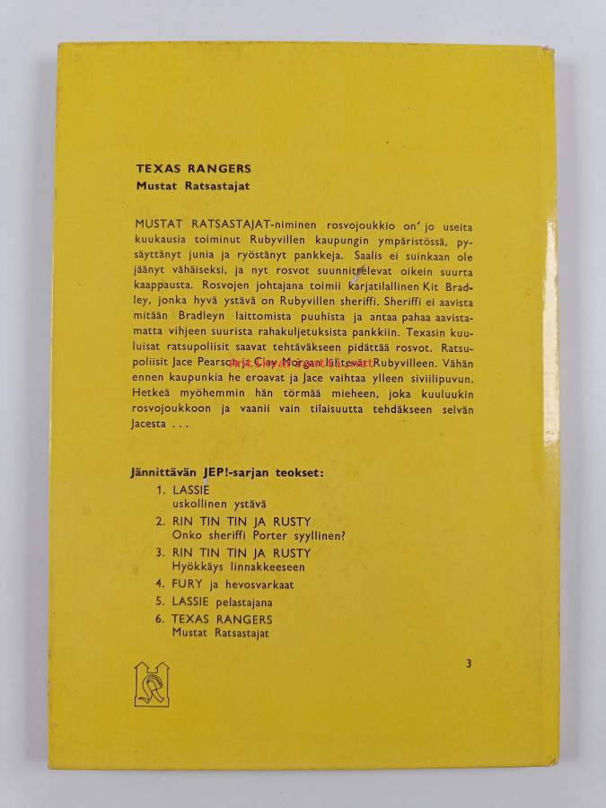 Muu(t) tekijä(t): Inga FangerSarja: Jep-kirja 6Alkuteos: Texas Rangers ; die Schwartzen Reiter in der Falle