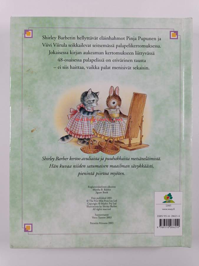 Hyvä. Tarkempi kuntoluokka: K3- ; Hieman tahraisuutta kansissa, hieman käytön jälkeä kansissa. kaikki palat tallessa, pienoista repeämää joidenkin palojen reunoilla, sivuilla ja paloissa pienoista tahraisuutta