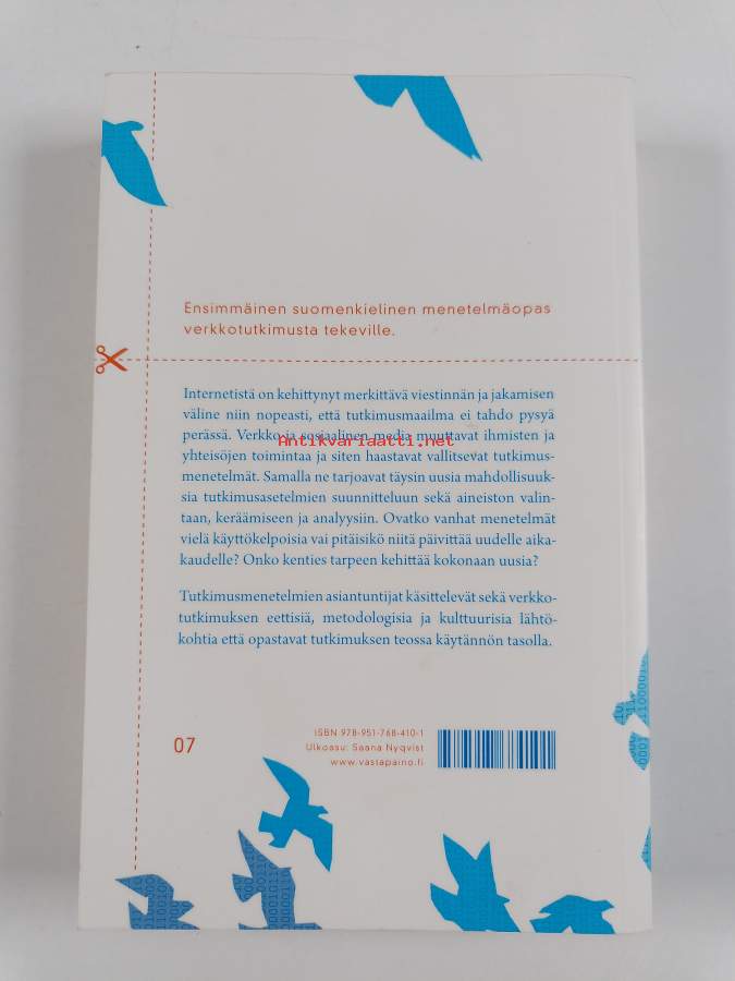 Muu(t) tekijä(t): Janne Matikainen, Salla-Maaria Laaksonen ym.Asiasanat: Internet, tutkimus, sosiaalinen media, verkkokeskustelu, viestintä, vuorovaikutus, lähdeaineisto, tutkimusmenetelmät, tutkimusetiikka, metodologia, kulttuurintutkimus, mediatutkimus, verkkopalvelut, tiedonhankinta, sisällönanalyysi, etnografia, lomakkeet, big data, communication, kyselytutkimus, verkkoympäristö, käyttäjätutkimus, Social media, Research methods, verkkopelit, living lab -toiminta, pelitutkimus, verkostoanalyysi