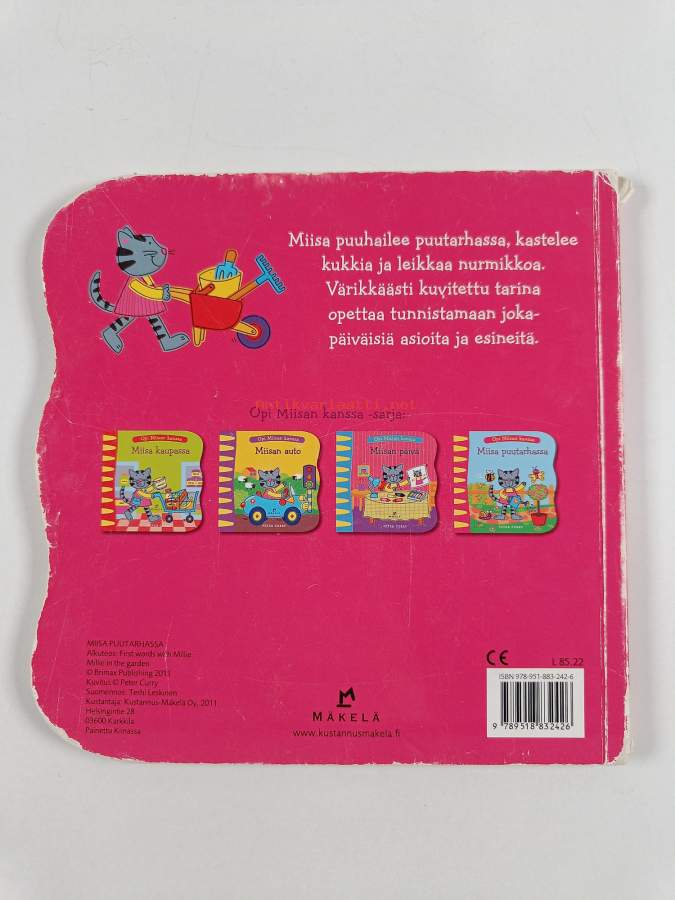 Muu(t) tekijä(t): Terhi LeskinenSarja: Opi Miisan kanssaAlkuteos: Millie in the gardenAsiasanat: kissa, lastenkirjallisuus, puutarhanhoito, paksulehtiset kirjat, runokuvakirjat