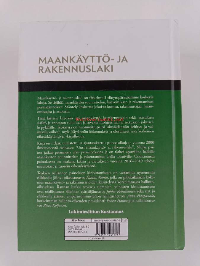 Muu(t) tekijä(t): Jukka Reinikainen, Auvo Haapanala ym.Asiasanat: rakentaminen, kaavoitus, maankäyttö, muutoksenhaku, maankäyttö- ja rakennuslaki, byggande, markanvändning, ändringssökande, planläggning, markanvändnings- och bygglag, lupamenettely, tillståndsförfarande