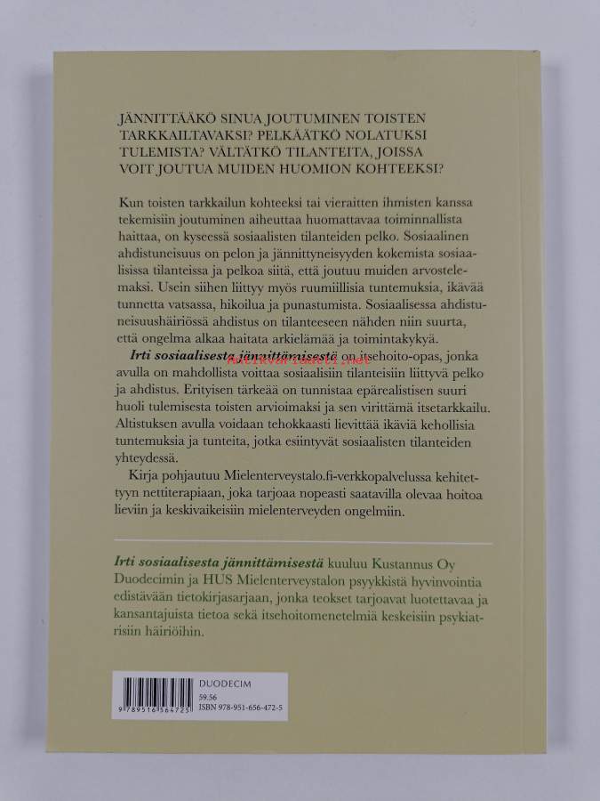 Asiasanat: ahdistus, jännittäminen, sosiaalisten tilanteiden pelko, ahdistuneisuushäiriöt