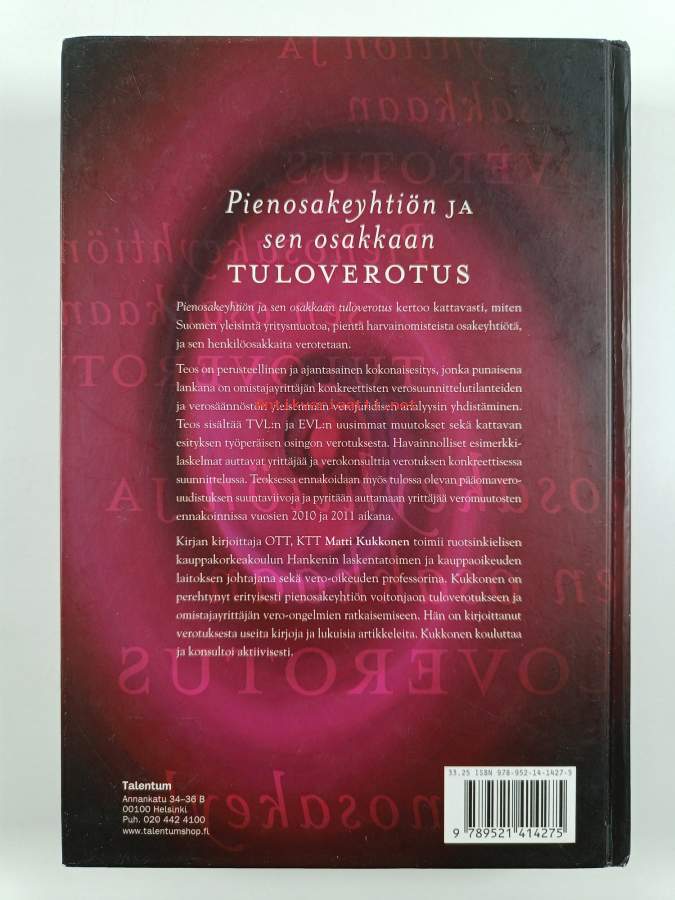 Asiasanat: lainsäädäntö, verotus, osakeyhtiöt, osuuskunnat, yritysmuodot, yritysjärjestelyt, tulovero, osakkaat, verosuunnittelu, pienyritykset, sukupolvenvaihdos, osingot, yhtiöverotus, luovutusvoitot, voitonjako