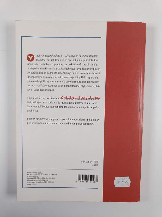 Sarja: Yrityksen taloushallinto 1; PrimaAsiasanat: yritykset, tilinpäätös, verotus, kirjanpito, laskentatoimi, yritysverotus, asiakirjat, arvonlisävero, taloushallinto, palkanlaskenta, jaksotus