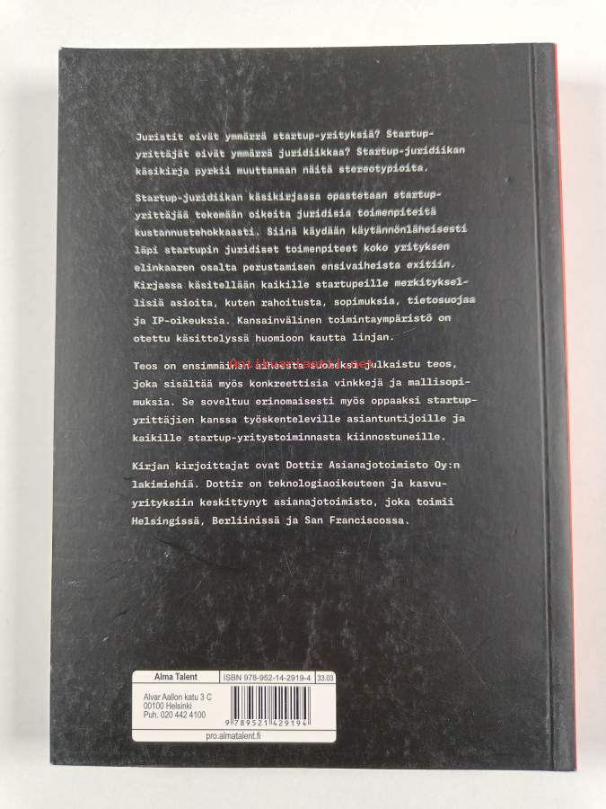 Muu(t) tekijä(t): Antti Innanen, Jaakko Lindgren ym.Asiasanat: kansainvälistyminen, yritykset, yritystoiminta, lainsäädäntö, sopimusoikeus, yhtiöoikeus, perustaminen, sopimukset, rahoitus, tietoturva, tietosuoja, työsopimukset, immateriaalioikeus, liikesalaisuus, brändit, startup-yritykset