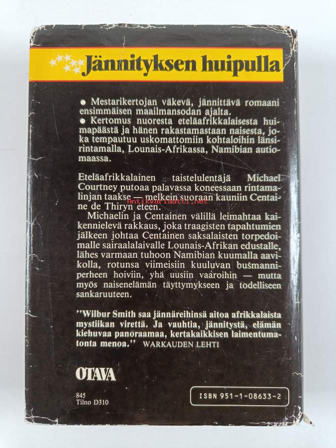Hyvä. Tarkempi kuntoluokka: K3- ; Hieman kulumaa kansissa, pienoista rispaantumaa kulmissa, pienoista tahraisuutta kansissa. Kansipaperin kunto: repeämiä/kulumaa