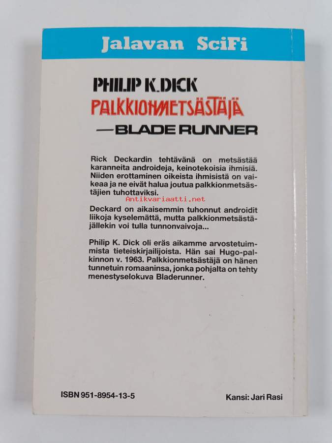 Muu(t) tekijä(t): Kari NenonenSarja: Jalavan scifi-sarja no. 16Alkuteos: Do Androids Dream of Electric Sheep?Asiasanat: Blade runner