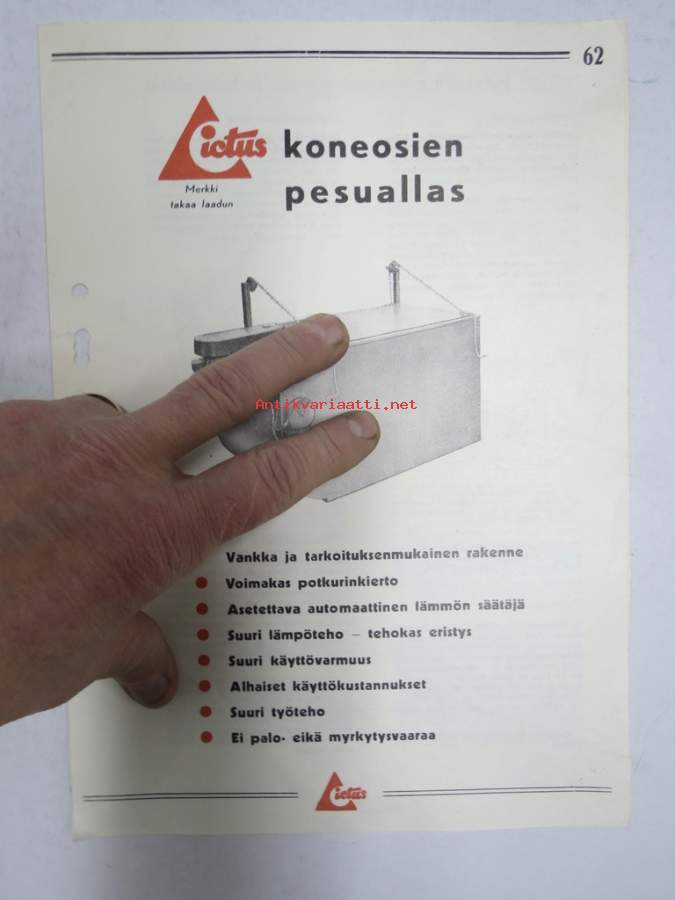 Ictus koneosien pesuallas -myyntiesite, käyttöohje