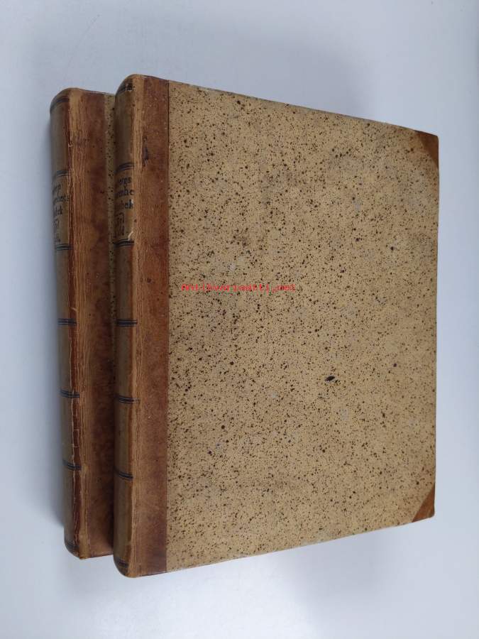 Hyvä. Jonkin verran kulumaa kansissa, selkämyksessä aavistus vinoutta. teksti fraktuuraa ; sivujen syrjillä roiskekuviointi
