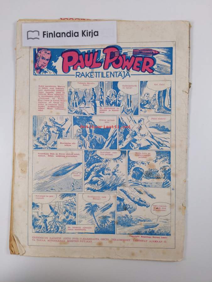 Hyvä. Tarkempi kuntoluokka: K3- ; Jonkin verran repeämää reunoilla ja kulmissa, jonkin verran tahraisuutta kansissa, selkämyksessä hieman vinoutta