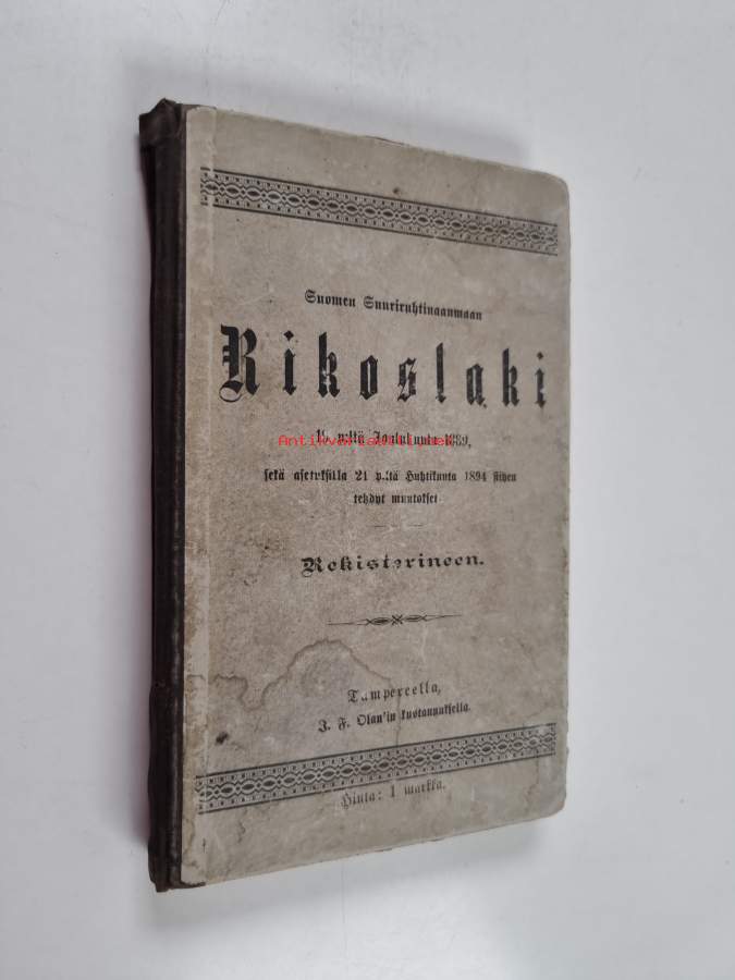 Asiasanat: lainsäädäntö, harvinaiskirjat, rikosoikeus, rikoslaki
