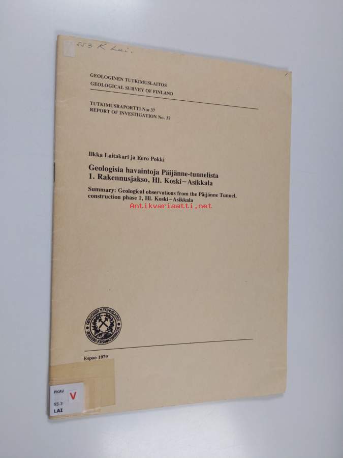 Geological observations from the Päijänne tunnel, construction phase 1, Hl. Koski - Asikkala