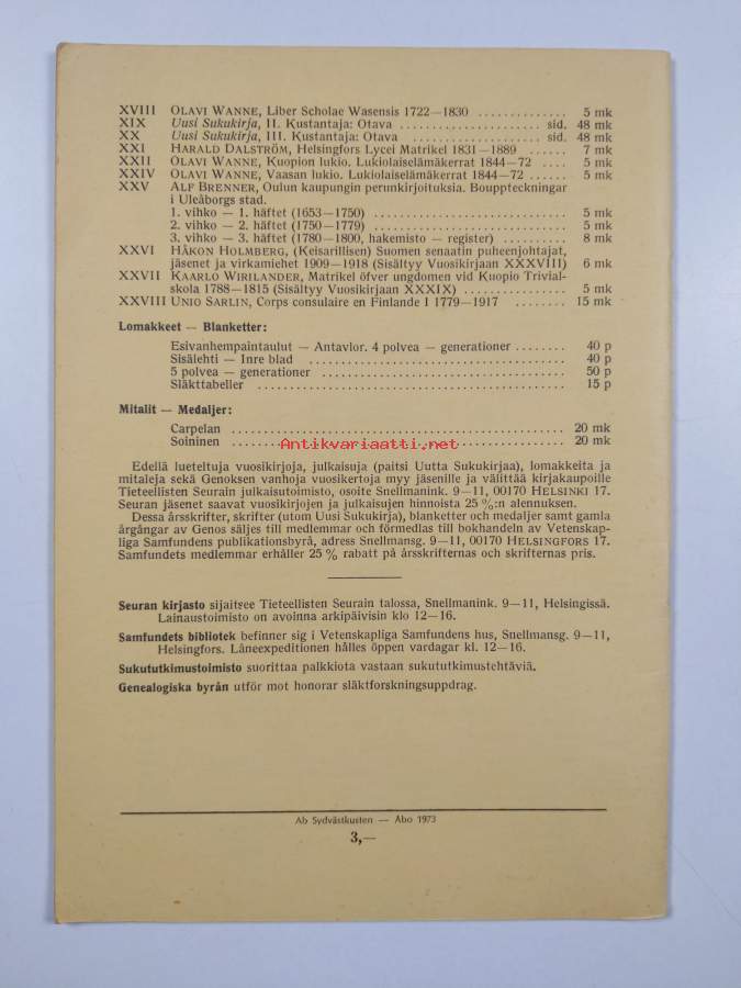 GENOS 1930, Sukutieteellinen aikaikauskirja - Tidskrift för släktforsning
