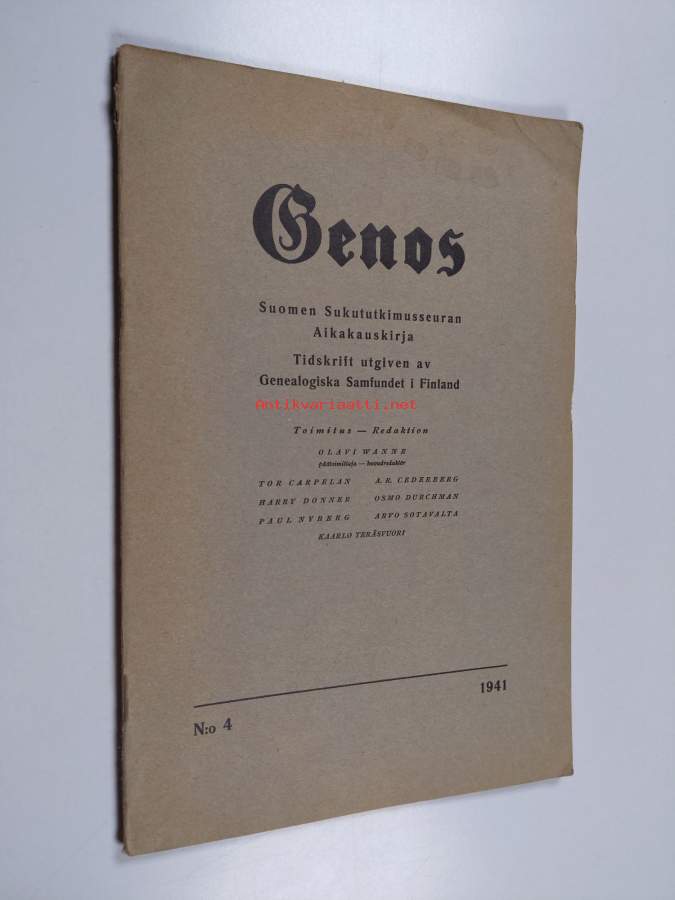 GENOS 1941, Sukutieteellinen aikaikauskirja - Tidskrift för släktforsning