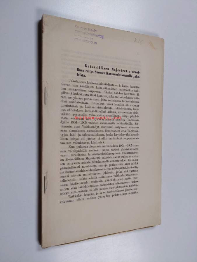 Keisarillisen majesteetin armollinen esitys Suomen Kansaneduskunnalle jakolaista