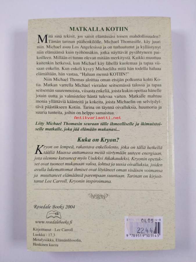 Muu(t) tekijä(t): Harri PietiläinenSarja: Kryon kirja 5Alkuteos: Kryon V : the journey homeAsiasanat: paranormaalit ilmiöt, yliluonnolliset olennot
