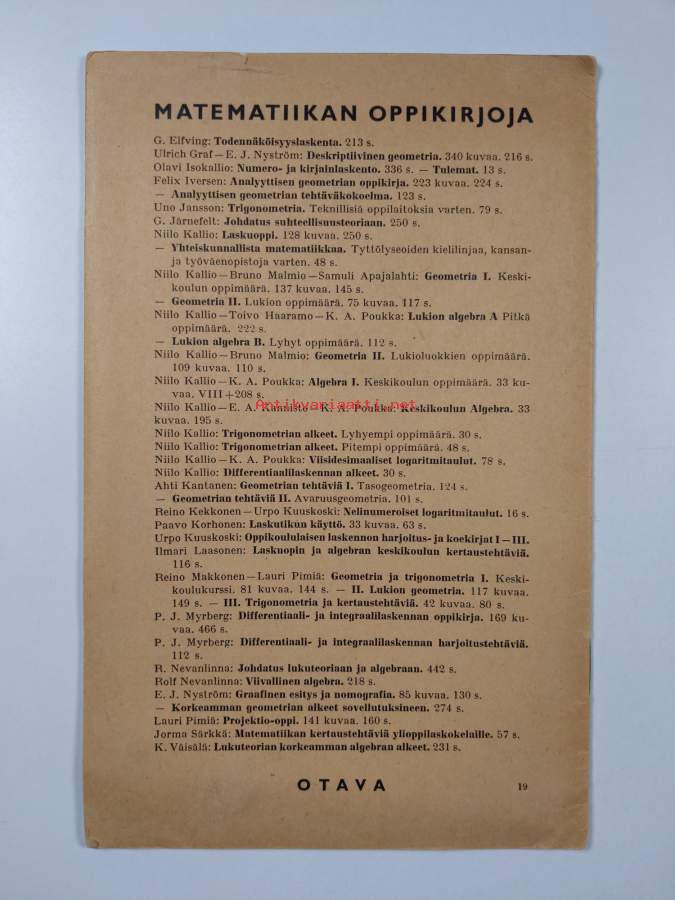 Nelinumeroiset logaritmitaulut : Lyhennelmä Esko Rannan ja Lennart Ekbomin kirjasta Matematiikan taulukot