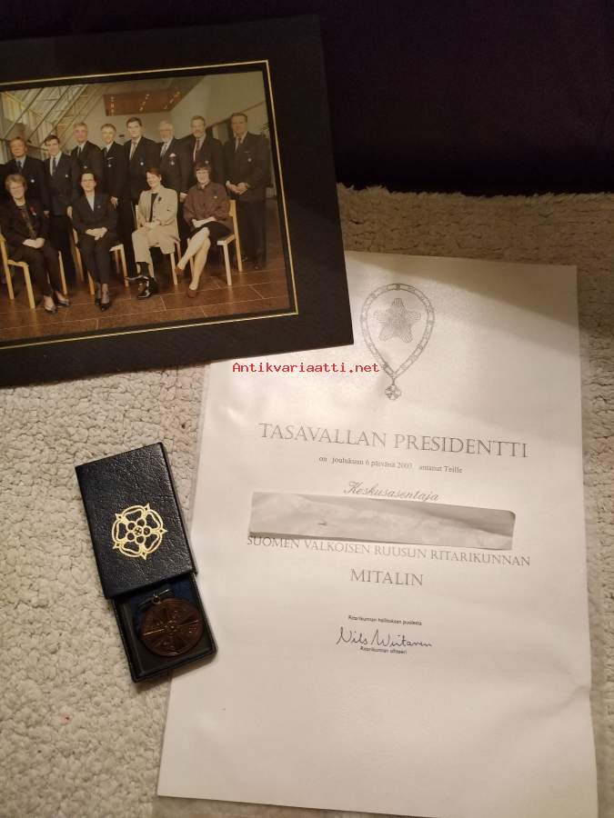 Suomen Valkoisen ruusun ritarikunnan merkki myöntökirjoin v. 2003