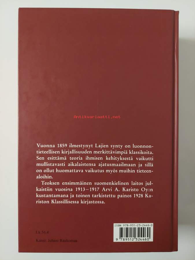 Muu(t) tekijä(t): A. R. KoskimiesAlkuteos: On the origin of speciesAsiasanat: evoluutio, kehitysoppi, luonnonvalinta, darwinismi, utvecklingslära, evolution, darwinism