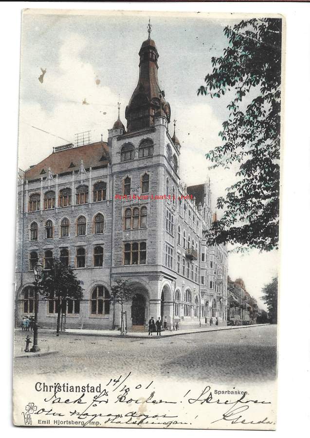 Kristianstad - paikkakuntakortti postikortti - kulkenut 1901 merkki pois