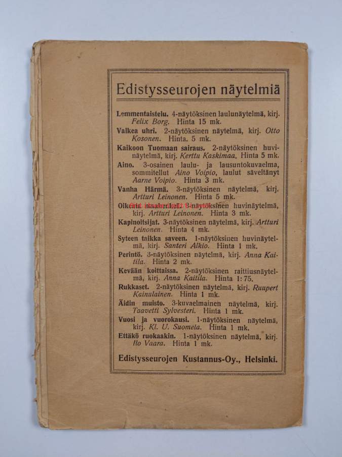 Sarja: Edistysseurojen näytelmiä 8Asiasanat: kotiseutukokoelma