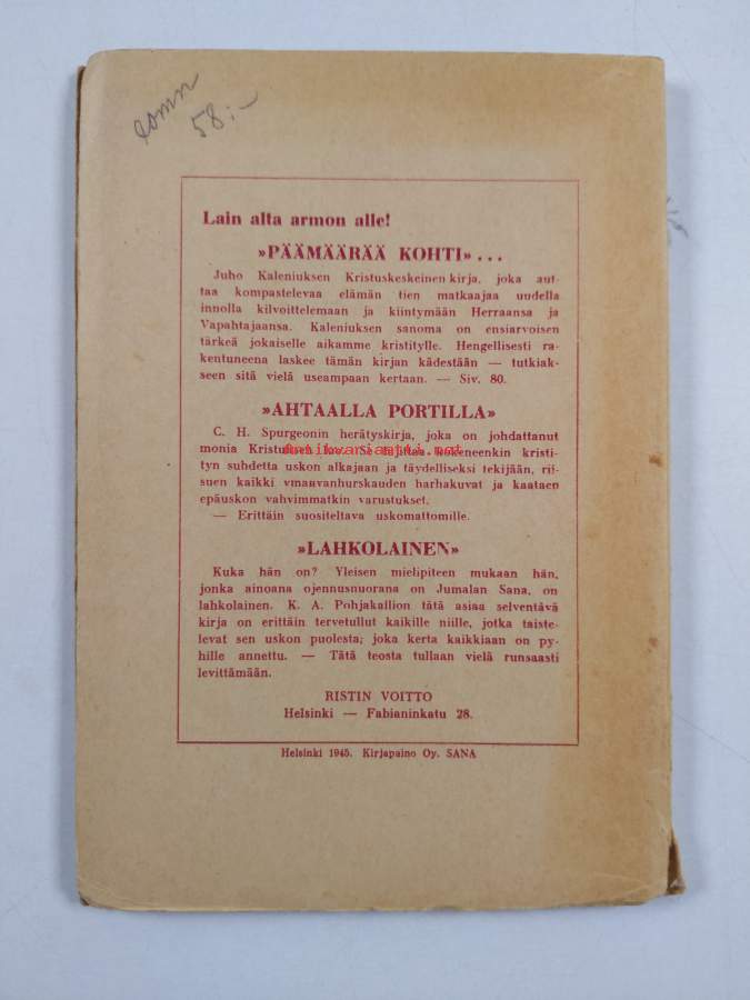 Tienviitta alkulähteelle, 1973. Alkuseurakunnan elinvoiman, Pyhän Hengen voiman merkityksestä sielujen voittamisessa seurakunnan kautta Kristukselle.