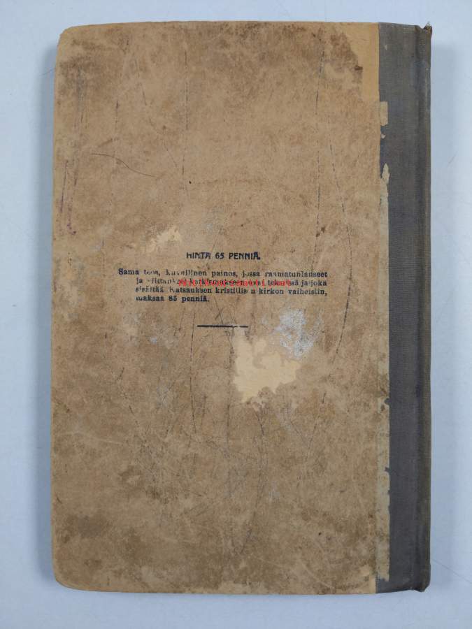 Tyydyttävä. Tarkempi kuntoluokka: K2- ; Jonkin verran nuhruisuutta kansissa, muutamalla sivulla lyijykynämerkintöjä, joidenkin sivujen kulmia taitettu.