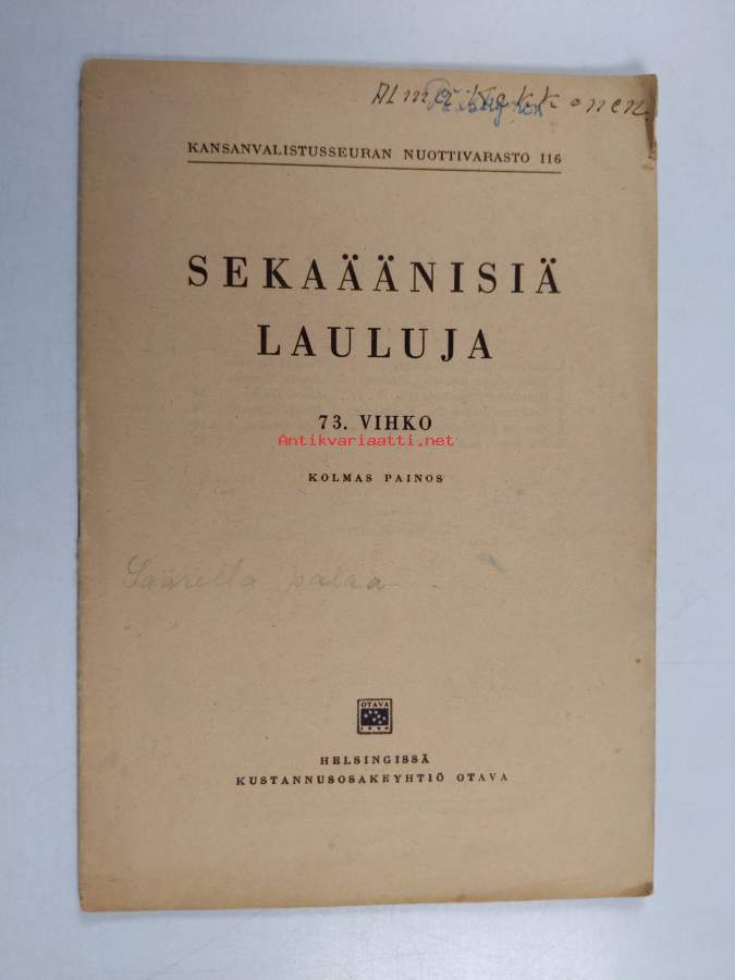 Sekaäänisiä lauluja 73. vihko Kansanvalistusseuran nuottivarasto 116