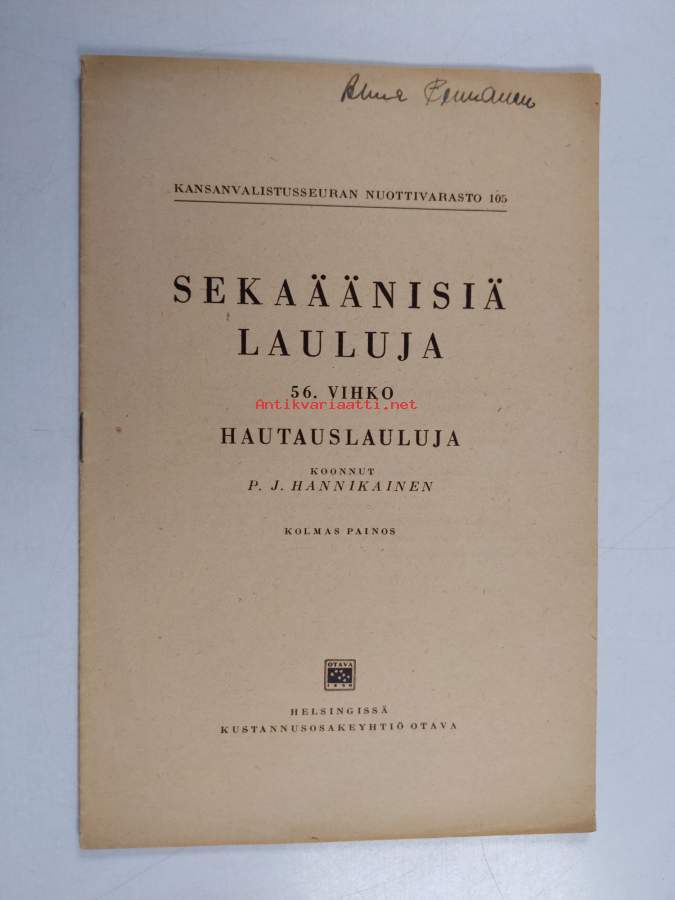 Merkinnät: omistajamerkintäSarja: Kansanvalistusseuran nuottivarasto 105