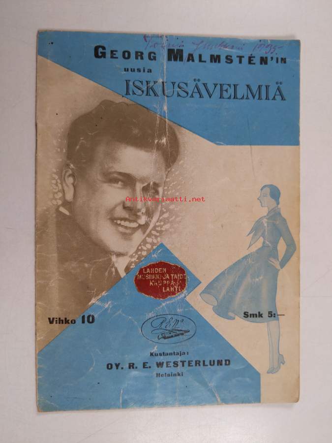 Odeon Hf-1156 / A 228518a Georg Malmsten - Muistelo-tango / Hf-1041 / 228518b Georg Malmsten - Taikasävel-valssi -savikiekkoäänilevy, 78 rpm record