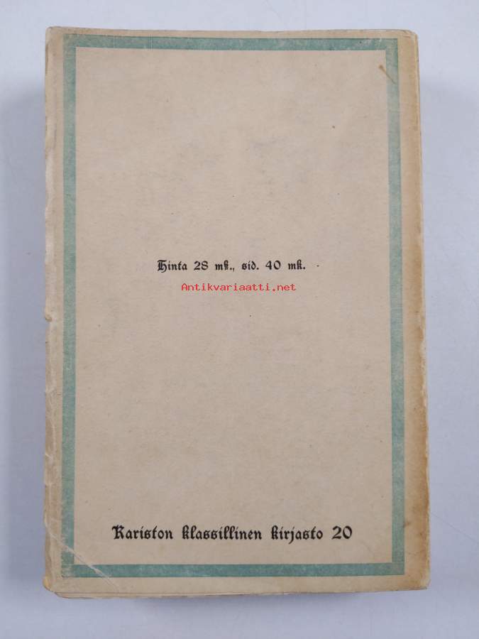 Muu(t) tekijä(t): Edwin HagforsMerkinnät: omistajamerkintä & exlibris: Heikki HosiaSarja: Kariston klassillinen kirjasto 20