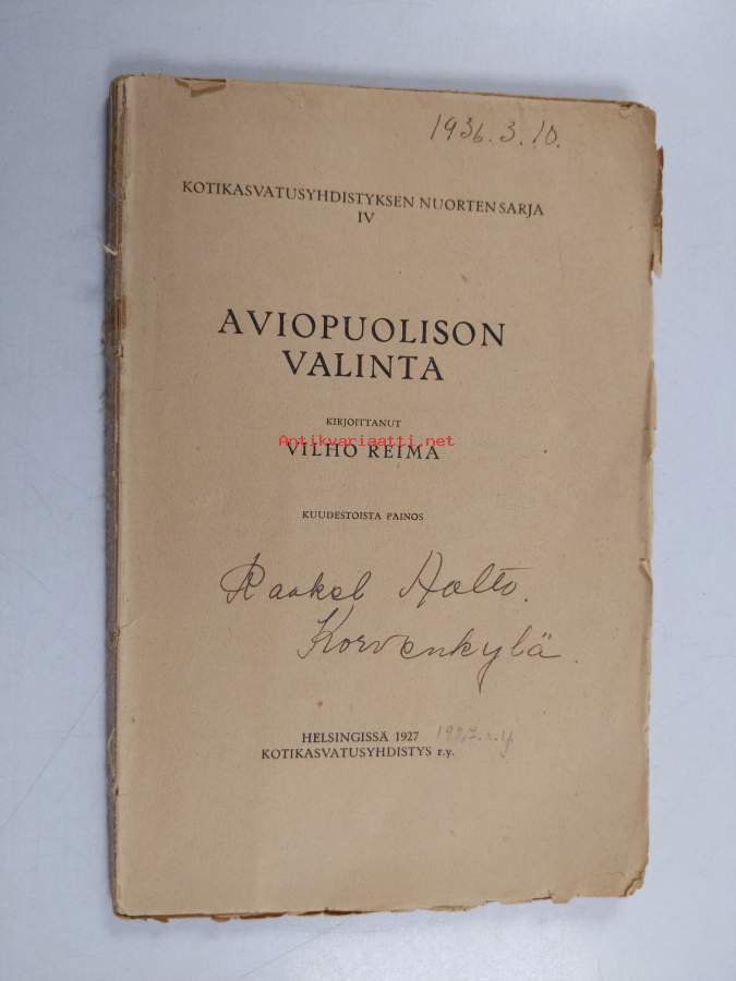 Merkinnät: omistajamerkintäSarja: Kotikasvatusyhdistyksen nuorten sarja 4Asiasanat: aviopuolisot, avioliitto, eettinen kasvatus