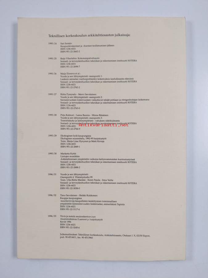Sarja: Teknillisen korkeakoulun arkkitehtiosaston julkaisuja 1996/33